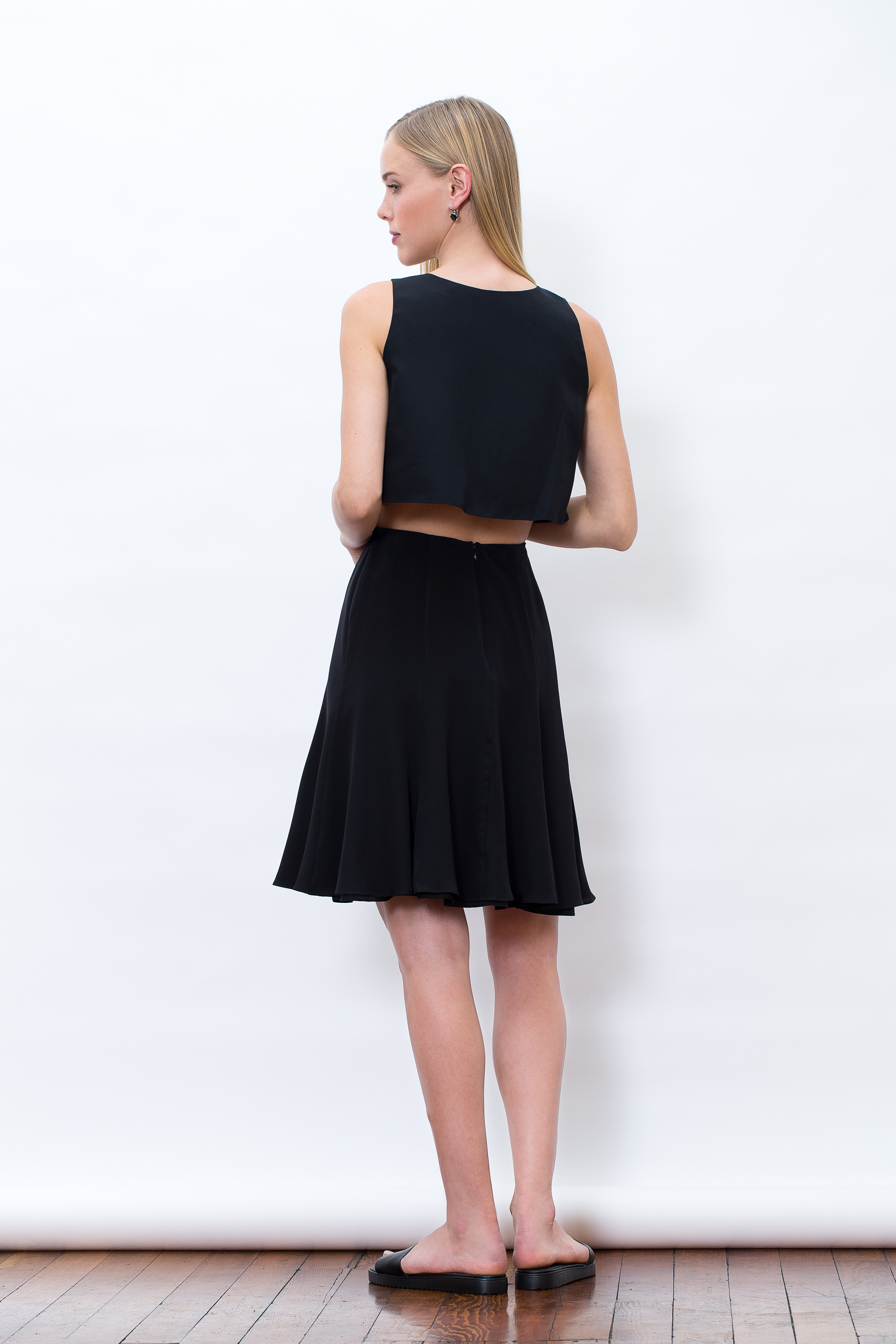 By sporting a skirt or trouser with a high waist, troublesome areas are concealed, and a crop top then becomes the perfect way to show a little skin whilst still leaving something to the imagination—perfect for date night.